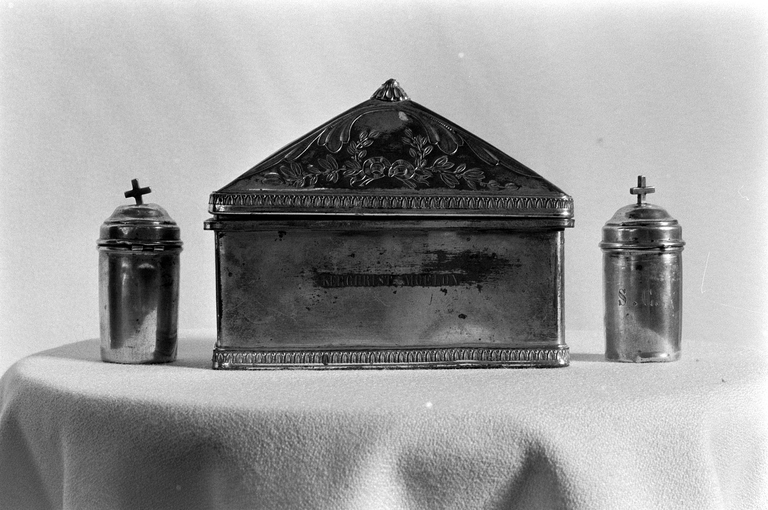 Ampoule aux saintes huiles (boîte à sainte huile), église Paroissiale Notre-Dame (Kergrist-Moëlou),
