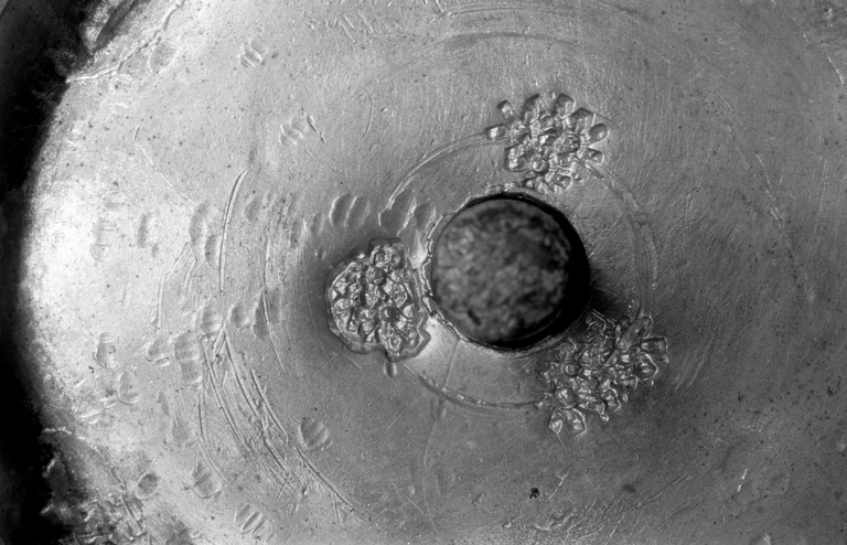 Encensoir : détail des poinçons surfrappés sous l'encensoirImmatriculation