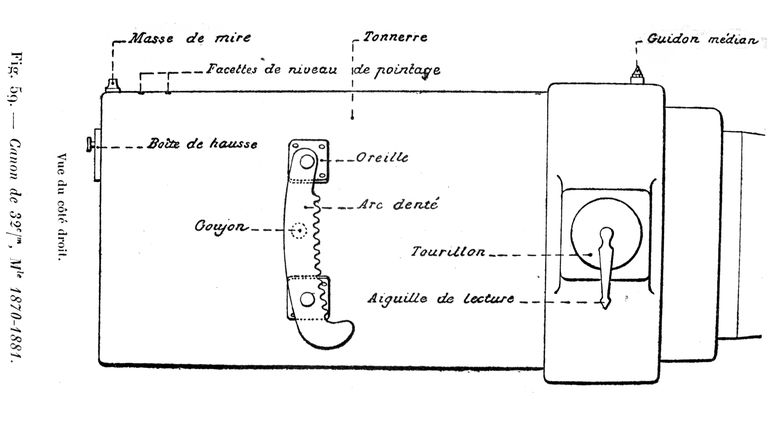 Plan détaillé du côté droit d'un canon de 32 cm modèle 1870-1881Immatriculation
