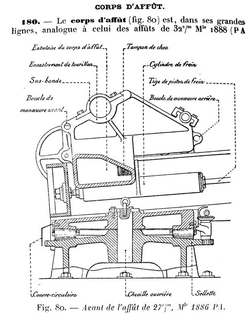 Plan détaillé de l'avant d'un affût modèle 1886 PA pour canon de 27 cmImmatriculation
