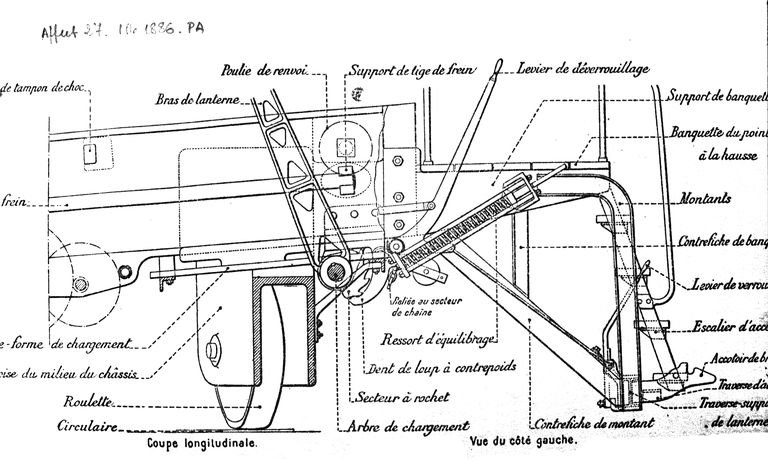 Plan détaillé d'un affût modèle 1886 PA pour canon de 27 cmImmatriculation