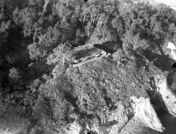 Vue aérienne du corps de garde crénélé n° 2 modifié dite batterie de Morgat ou Kador en 1971Immatriculation