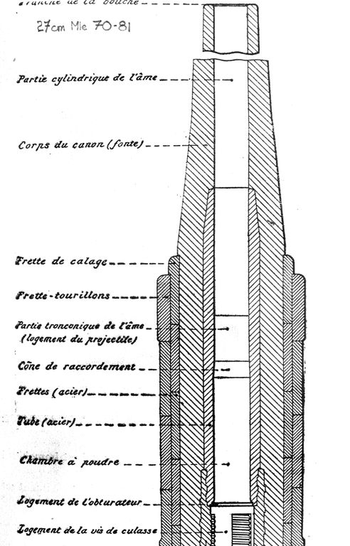 Coupe d'un canon de 27 cm modèle 1870-1881Immatriculation
