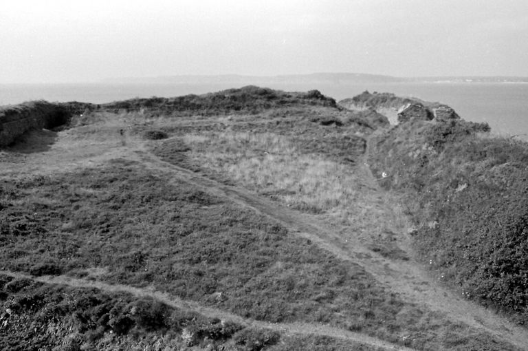 Vue de la batterie de l'île de l'Aber depuis la terrasse du corps de garde crénélé en 1972Immatriculation
