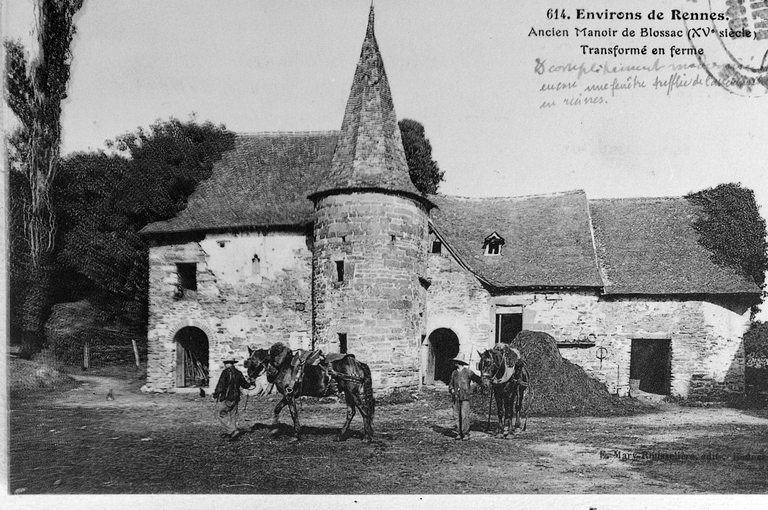 Carte postale ancienne : 614. Environs de Rennes. Ancien manoir de Blossac (Xvè siècle) transformé en ferme.Immatriculation