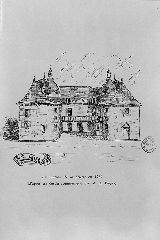 Dessin : Le château de la Musse en 1789.Immatriculation