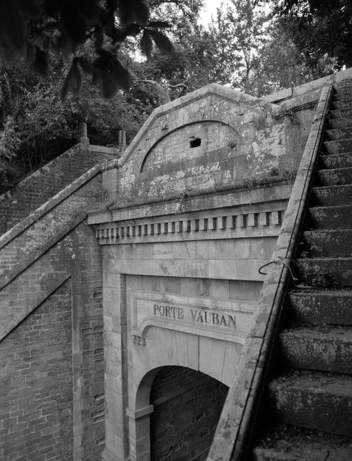 Enceinte de ville - Mur d'enceinte, porte Vauban, détail du haut de la porteImmatriculation