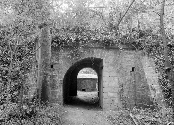 Le Palais, enceinte urbaine, courtine 20-21, tenaille, passage voûté, état dans les années 1970.Immatriculation