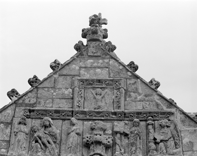 Porche sud, partie supérieure du pignon.Immatriculation