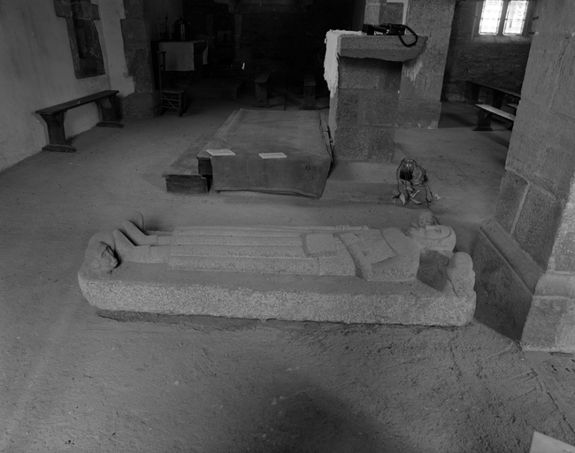 Dalle funéraire : gisant de saint Jorand, vue de 3/4Immatriculation