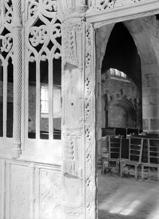 Jubé, face ouest : détail du poteau nord de la porte (niches à dais)Immatriculation