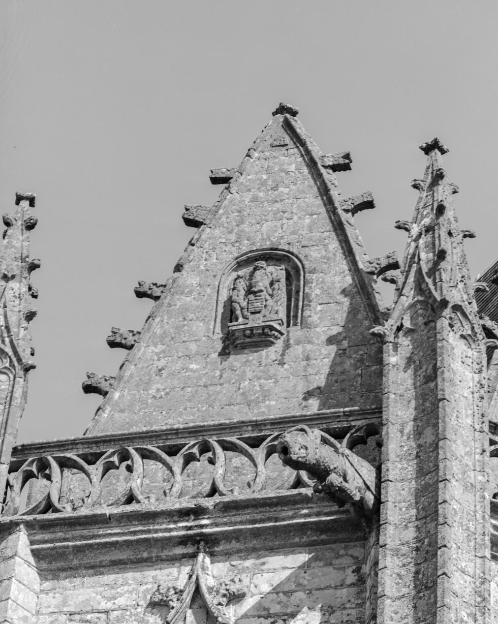 Armoiries sur le pignon du chevet à l'est.Immatriculation