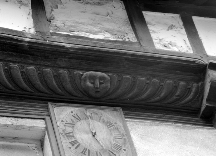 16 rue du Pont, décor et horloge sur la façade.Immatriculation