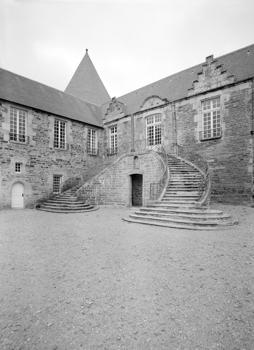 Escalier à l'angle nord-ouest de la cour.Immatriculation