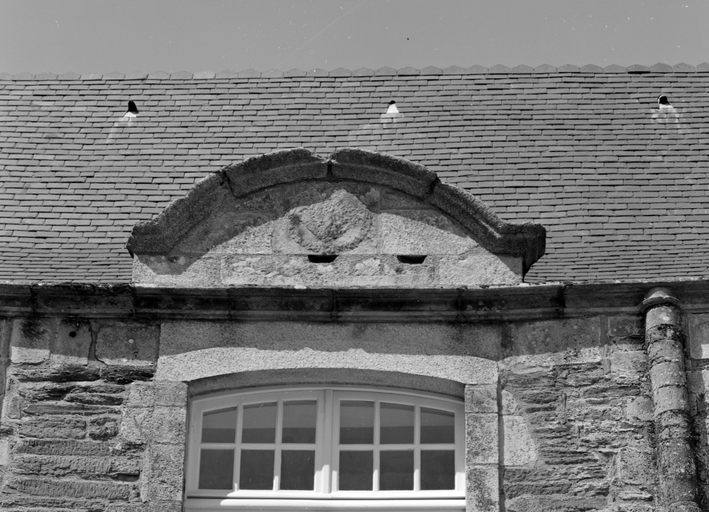 Aile nord, élévation sur cour, deuxième lucarne.Immatriculation