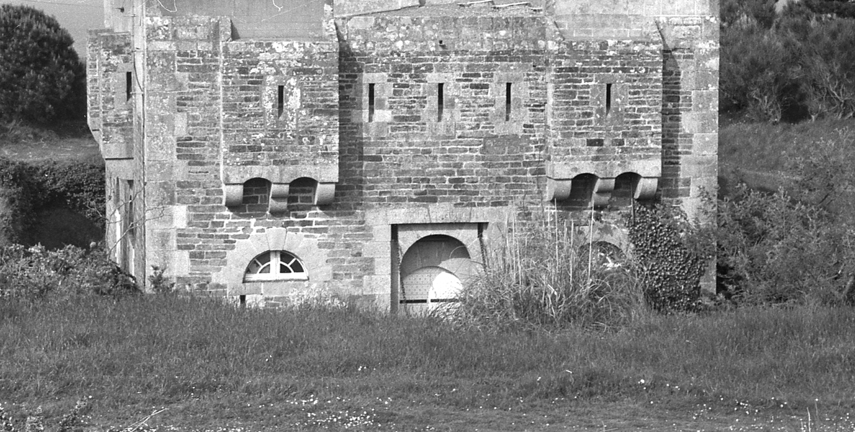 Locmaria, batterie du Bugul, corps de garde crénelé, état dans les années 1970.Immatriculation