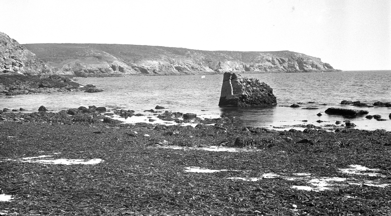 Locmaria, Port-Blanc, jetée en ruines.Immatriculation