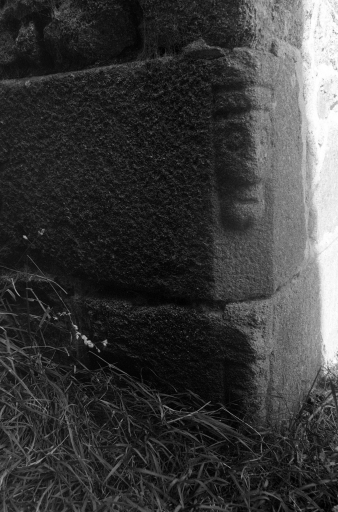 Visage sculpté à l'angle sud-ouest du logisImmatriculation