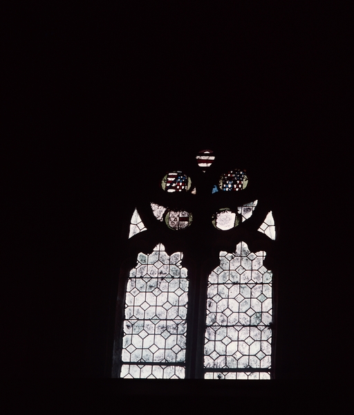 Croisillon occidental nord, fenêtre du mur nord (5) : détail du remplage et des armoiriesImmatriculation