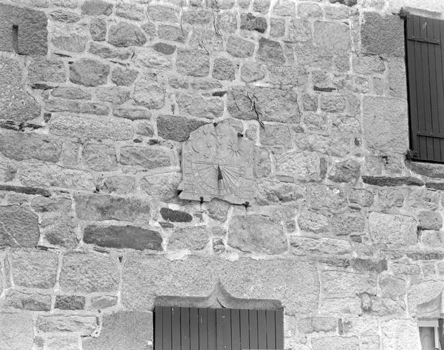 Façade antérieure : détail du cadran solaireImmatriculation