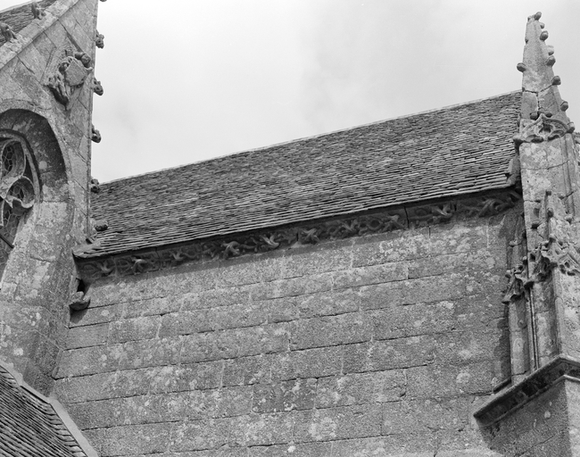 Porche sud : vue de la corniche sur le mur ouestImmatriculation
