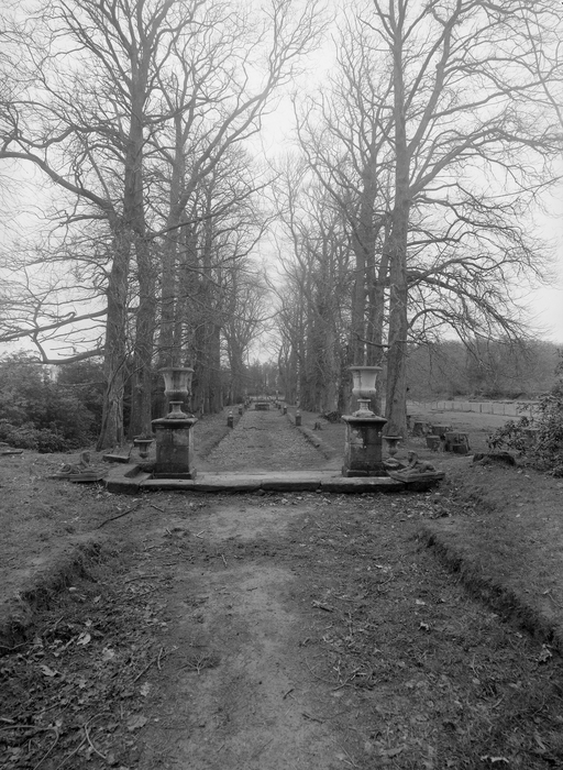 Jardin : allée bordée de vases (est du logis) (1978)Immatriculation