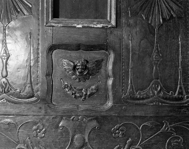 Drustuilh 11 daté 1900, détail de la "rosace" avec tête d'angelot. (1977)Immatriculation