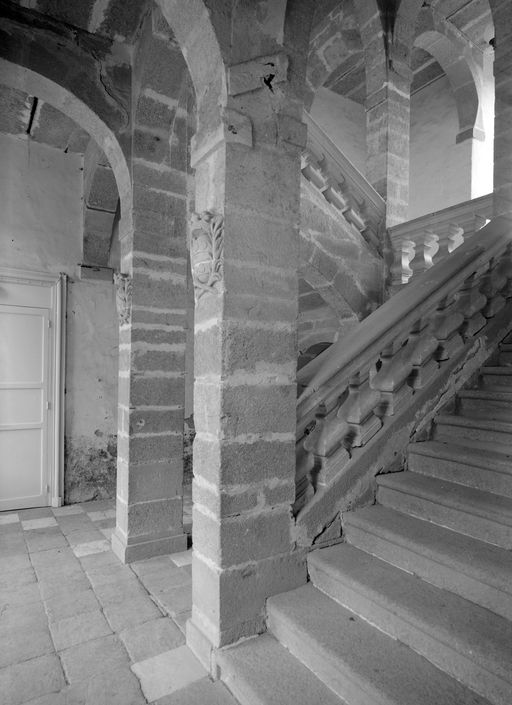 Château, escalier du logis au 1er niveau, angle sud-ouest.Immatriculation