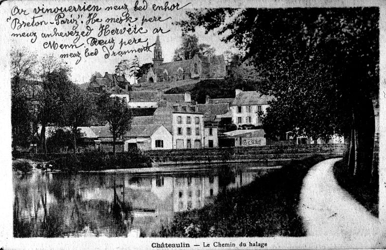 Chemin de halage (carte postale, limite 19e-20e siècle ; coll. part)Immatriculation