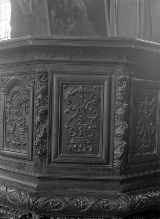 Chaire à prêcher, vue de détail de la cuve.Immatriculation