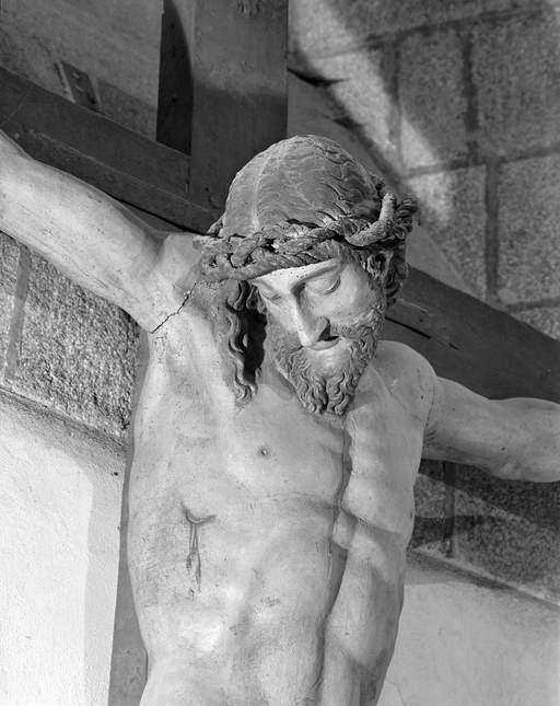 Statue (d'applique, figure colossale) : Christ en croix, église paroissiale Saint-Léonard (Fougères),