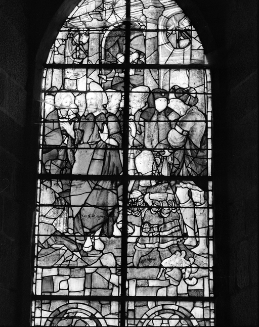 Mur nord, vitrail : La Femme adultère.Immatriculation