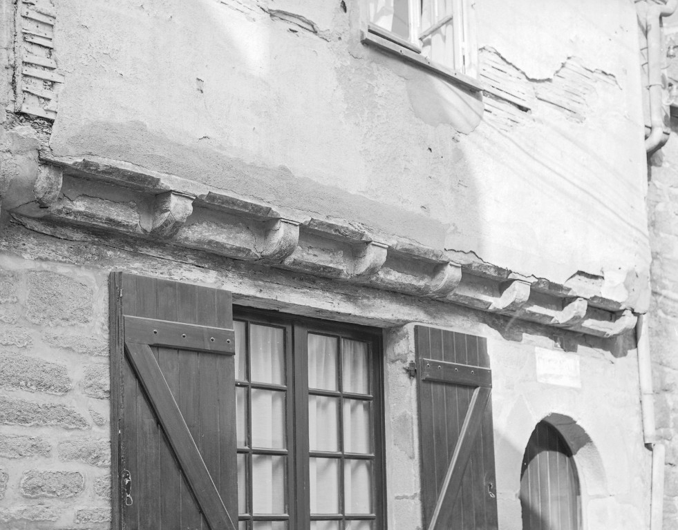 Détail de l'encorbellement sur solives avec entretoises.Immatriculation