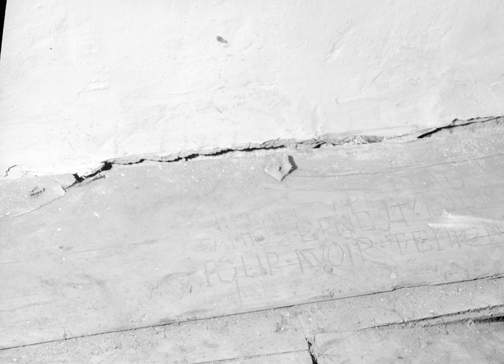 Cachot du rez-de-chaussée sud, graffiti sur une couchette.Immatriculation
