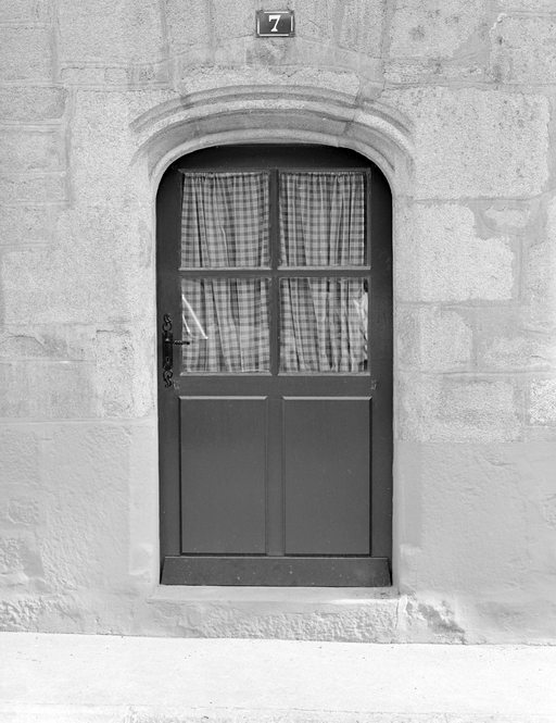 Rue aux Fèves, porte au rez-de-chaussée au linteau mouluré en anse de panier.Immatriculation