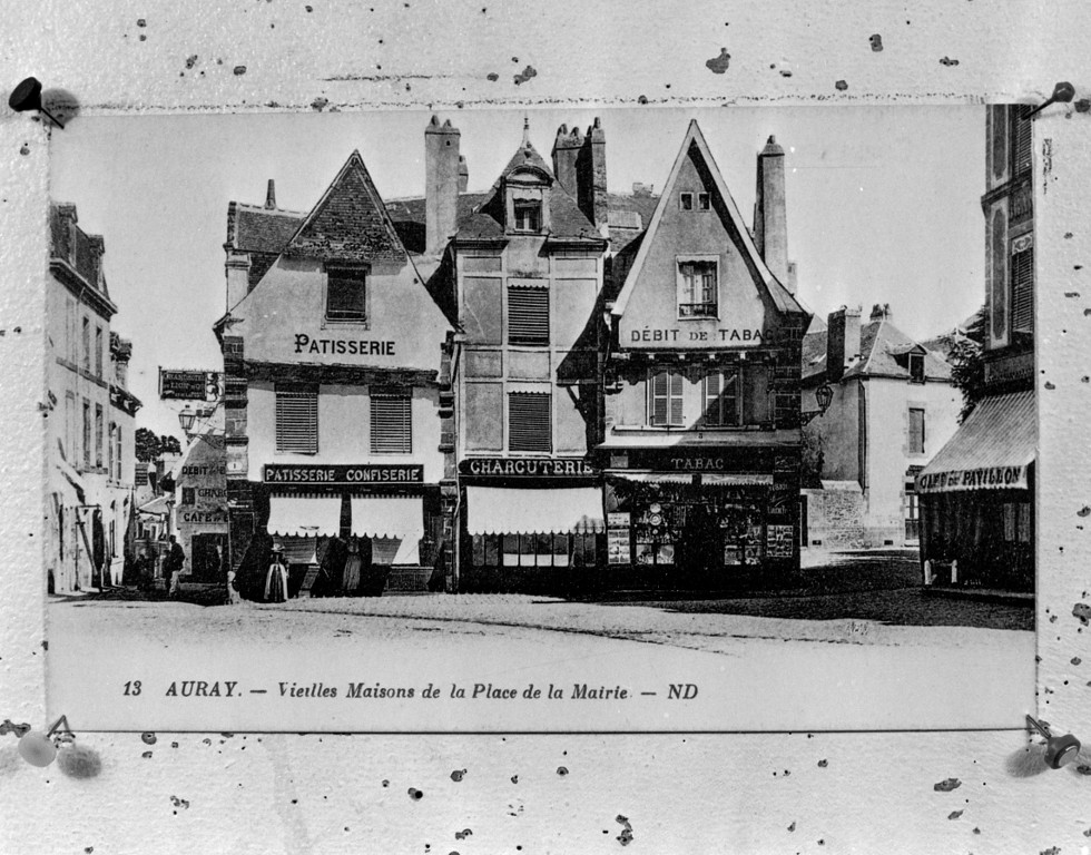 Vieilles maisons de la place de la mairie (à gauche, lucarne à fronton-pignon sur la rue du château, aujourd'hui détruite)Immatriculation