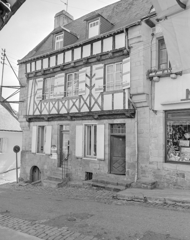 Façade gouttereau rue du Château, dont l'étage et le surcroît sont en pan de bois (état en 1978).Immatriculation