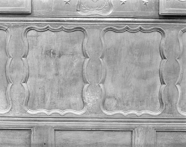 Drustuilh 7 daté 1831, détail de panneaux chantournés de la partie inférieure du meuble. (1979)Immatriculation
