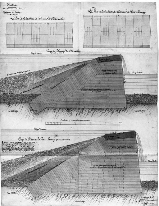 Plan et coupe du déversoir de Châteaulin? 1821 (A. N. Série F 14-1158)Immatriculation