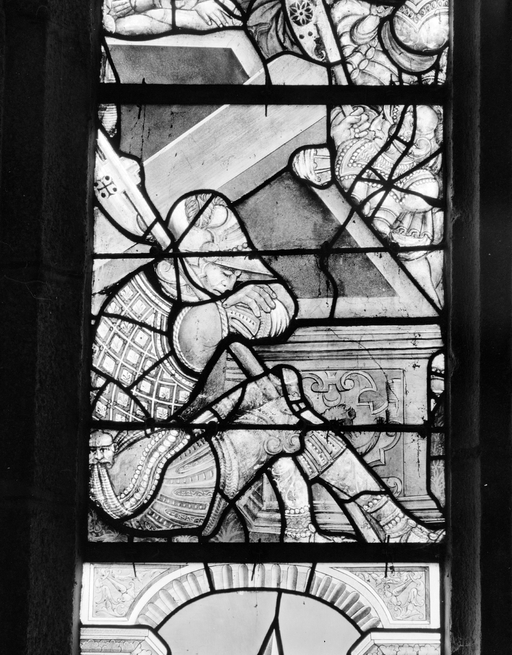 Verrière (maîtresse-vitre) : Passion, Résurrection, Jugement dernier, église Paroissiale Saint Hernin (Locarn),
