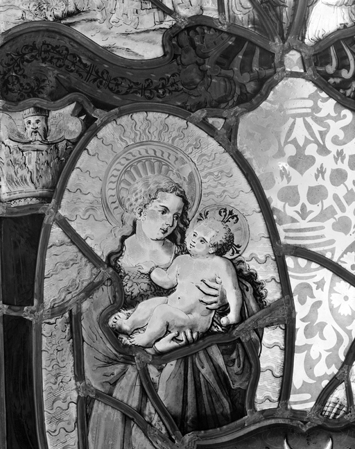 Lanvellec, Rosanbo : château, panneau A, partie inférieure, détail, Vierge à l'Enfant.Immatriculation