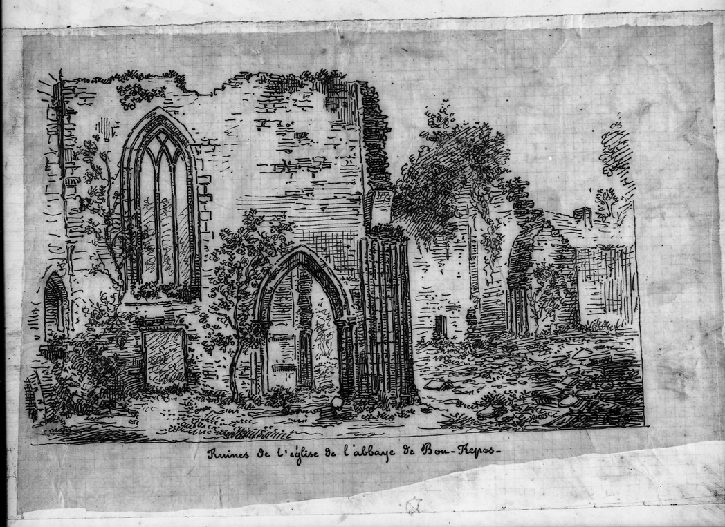 Croquis, ruines de l'église de l'abbaye de Bon-Repros.Immatriculation