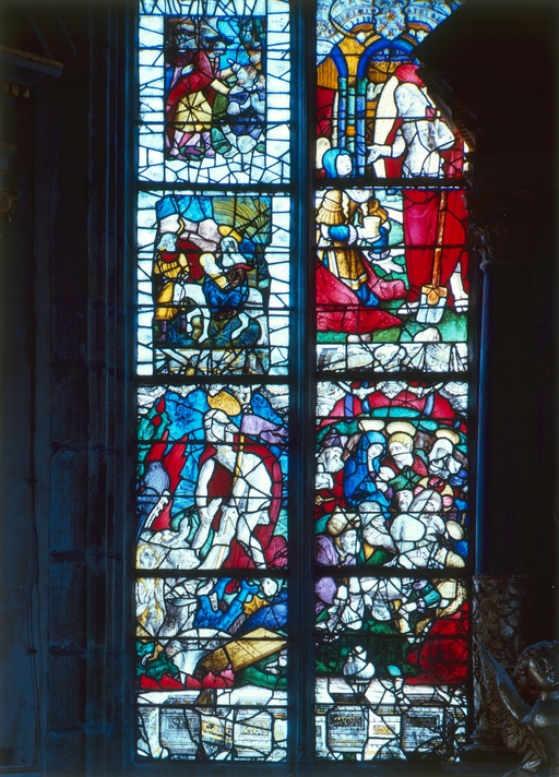 Verrière 2, panneau a2, détail tête et buste du Christ, ouvrière et femmes à droiteImmatriculation