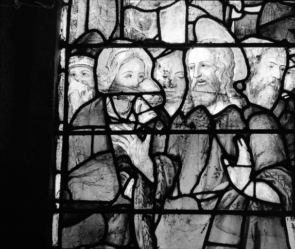 Mur nord, vitrail, la femme adultère : panneau A3.Immatriculation