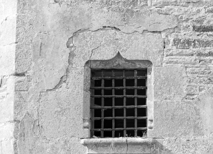Elévation postérieure, tour d'escalier, fenêtre du rez-de-chaussée.Immatriculation