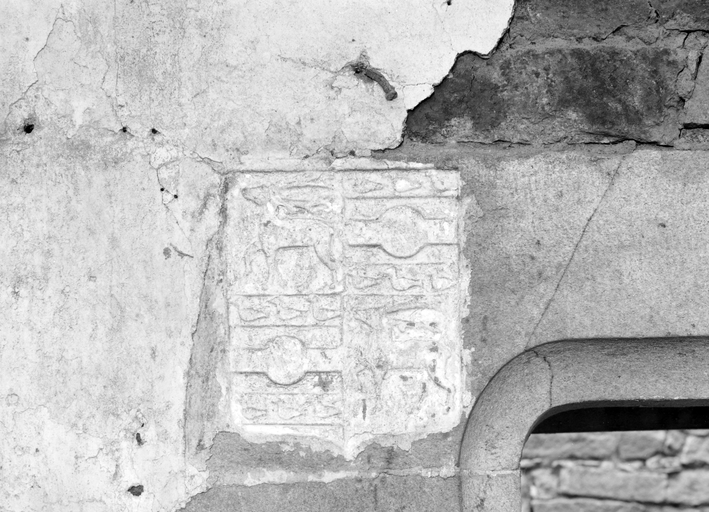 Rez-de-chaussée, pièce principale, porte, mur est : écu de gauche.Immatriculation