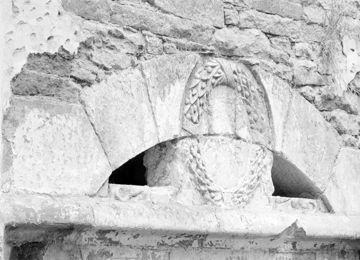 Rez-de-chaussée, corps central, pièce est : cheminée de l'angle nord-ouest : détail de la hotte.Immatriculation