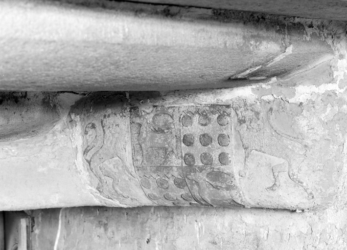 Rez-de-chaussée, escalier : écu au revers de la porte.Immatriculation