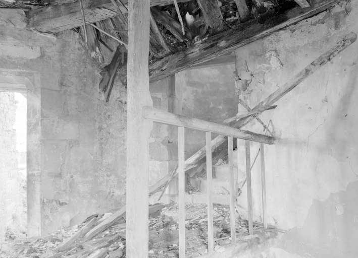 Escalier, palier du comble, accès à l'escalier menant à la picèe du comble de la tour d'escalier.Immatriculation