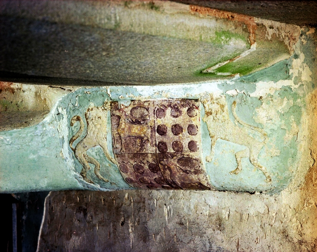 Rez-de-chaussée, escalier : écu au revers de la porte.Immatriculation